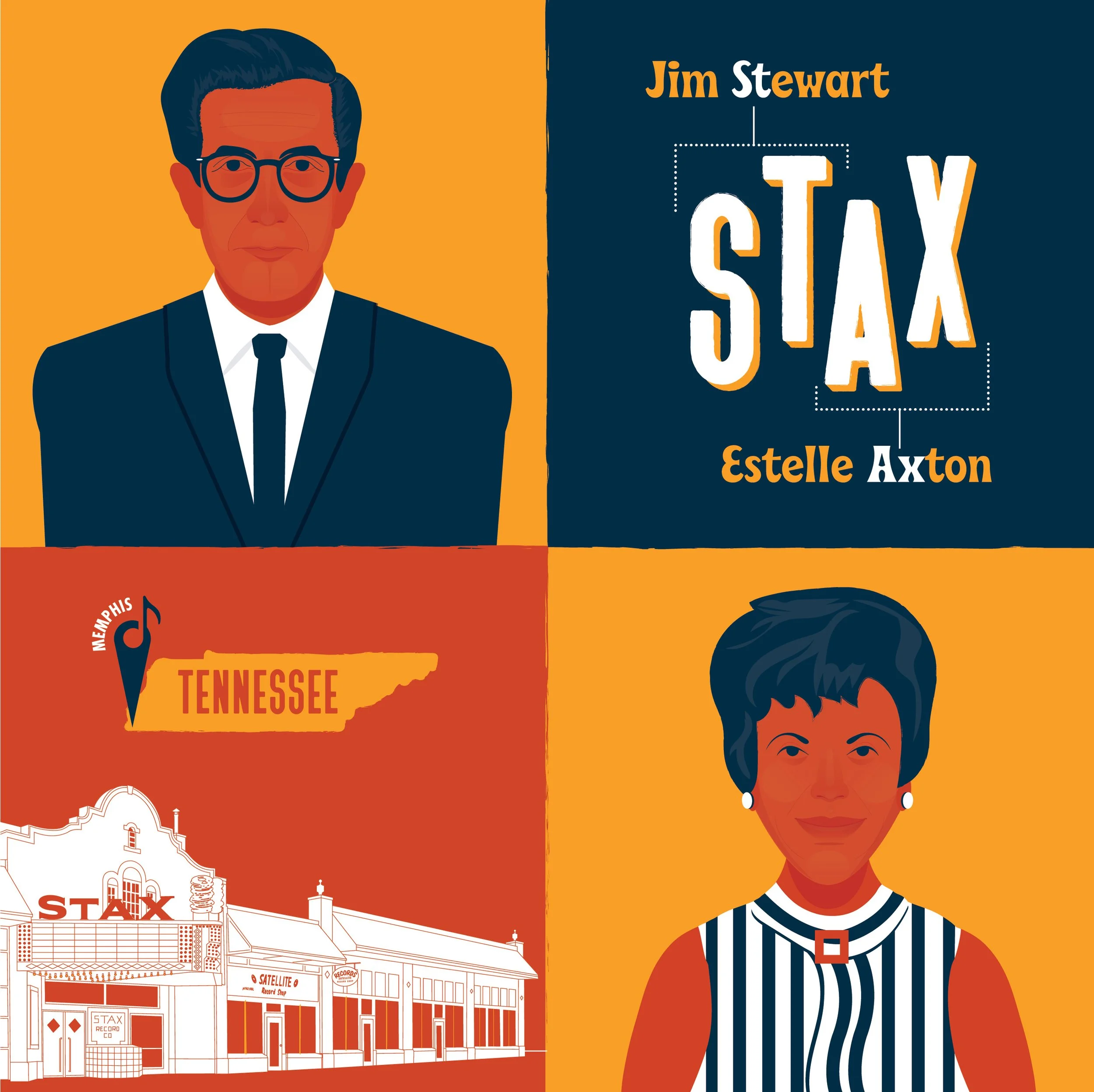 Jim Stewart and Estelle Axton. Illustration by J.D. Humphreys